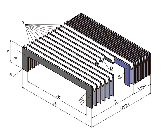 B=防护罩两端法兰 H≤h-hi或H≤(W-Wi)/2(两侧对称);